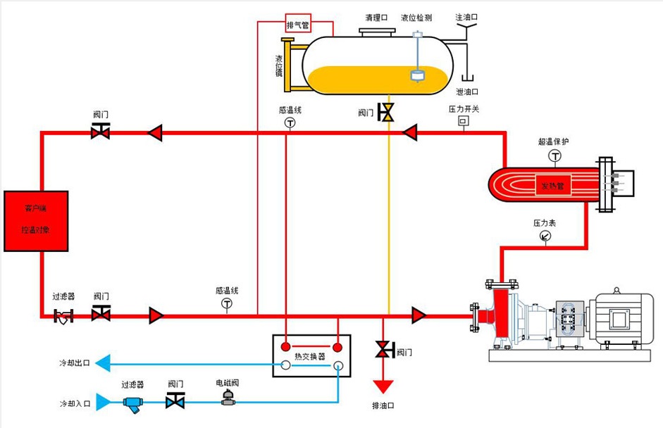 后,重新通過循環(huán)泵,回到加熱器,再吸收熱量,傳遞給用熱設(shè)備,如此周而復(fù)始,實(shí)現(xiàn)熱量的連續(xù)傳遞,使被加熱物體溫度升高,達(dá)到加熱的工藝要求.