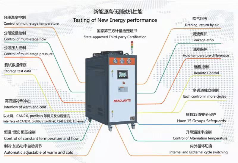 深圳市奧蘭特機械攜新能源汽車高低溫液冷測試機參加展會,奧蘭特機械新能源高低溫測試機應用廣泛、功能先進,在汽車領域的測試有動力電機測試、動力電池包測試、變速箱測試、充電樁老化測試、氫能源減壓測試、發(fā)動機冷熱沖擊測試,并且還應用電子電器測試、航天產品測試、BMS系統(tǒng)測試。